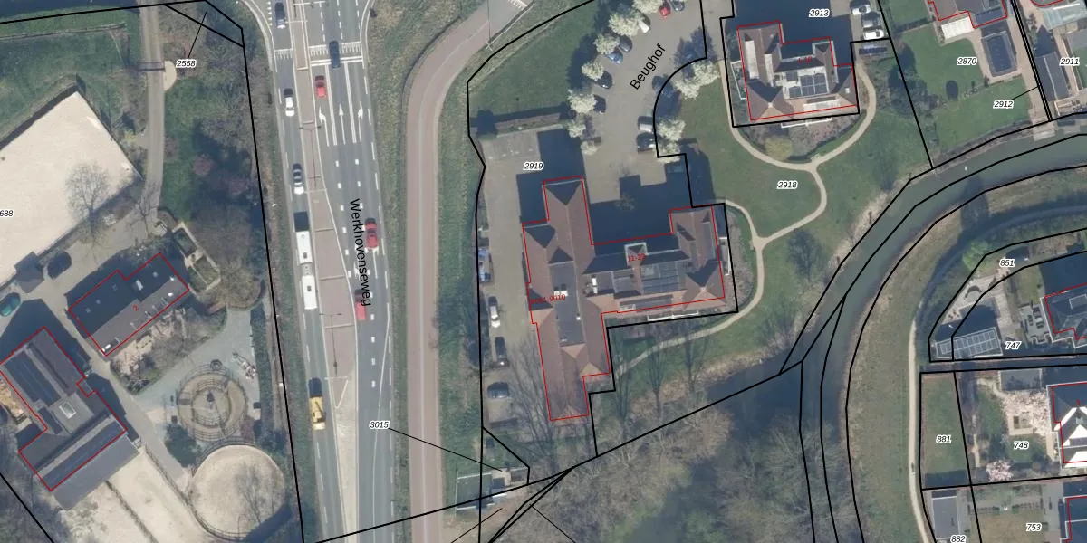 Het perceel waarop Beughof 9003 staat heeft een oppervlakte van 2960 m². Dit is een zeer groot perceel. De perceeloppervlakte wordt geregistreerd door het Kadaster. Gedetailleerde informatie over de maten van dit perceel kunt u vinden in het rapport Kadastrale kaart met maatvoering van Beughof 9003.