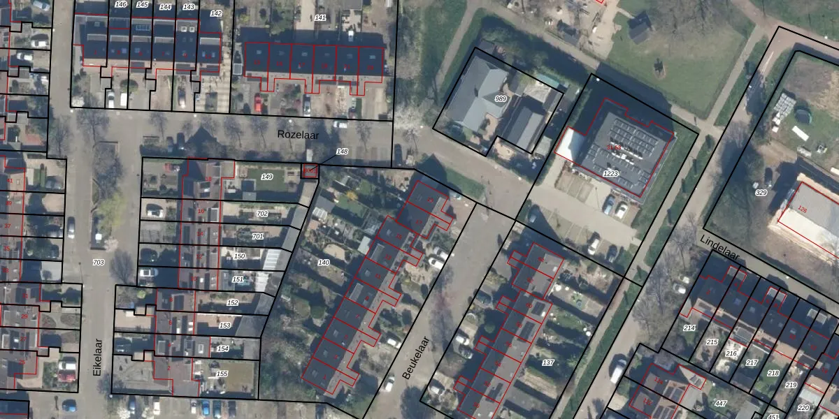 Het perceel waarop Beukelaar 17 staat heeft een oppervlakte van 1980 m². Dit is een zeer groot perceel. De perceeloppervlakte wordt geregistreerd door het Kadaster. Gedetailleerde informatie over de maten van dit perceel kunt u vinden in het rapport Kadastrale kaart met maatvoering van Beukelaar 17.