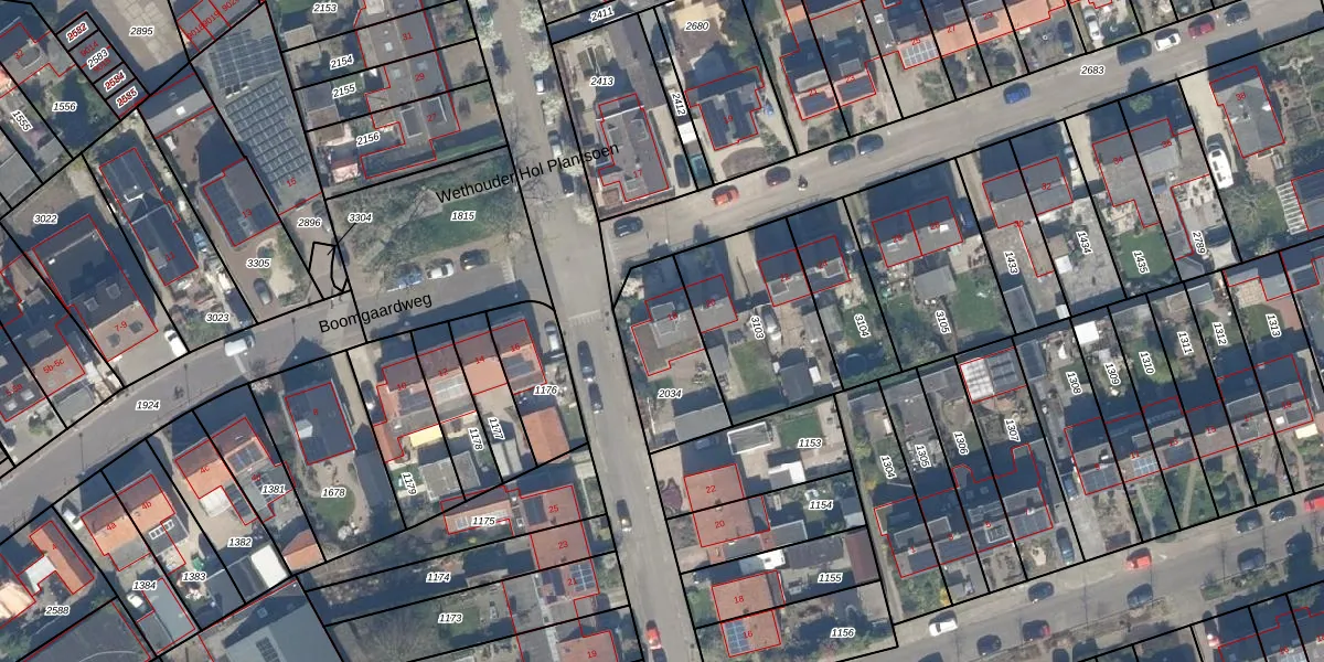 Gebruik de zoekbalk of klik op een perceel voor informatie over de adressen binnen dit perceel.