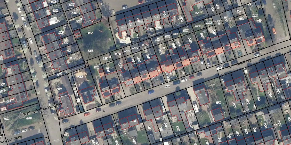 Gebruik de zoekbalk of klik op een perceel voor informatie over de adressen binnen dit perceel.