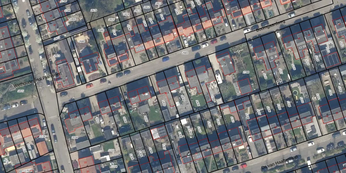 Gebruik de zoekbalk of klik op een perceel voor informatie over de adressen binnen dit perceel.