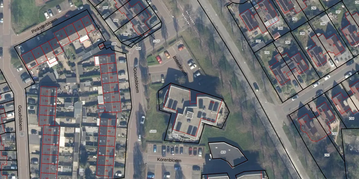 Het perceel waarop Boterbloem 26 staat heeft een oppervlakte van 865 m². Dit is een groot perceel. De perceeloppervlakte wordt geregistreerd door het Kadaster. Gedetailleerde informatie over de maten van dit perceel kunt u vinden in het rapport Kadastrale kaart met maatvoering van Boterbloem 26.