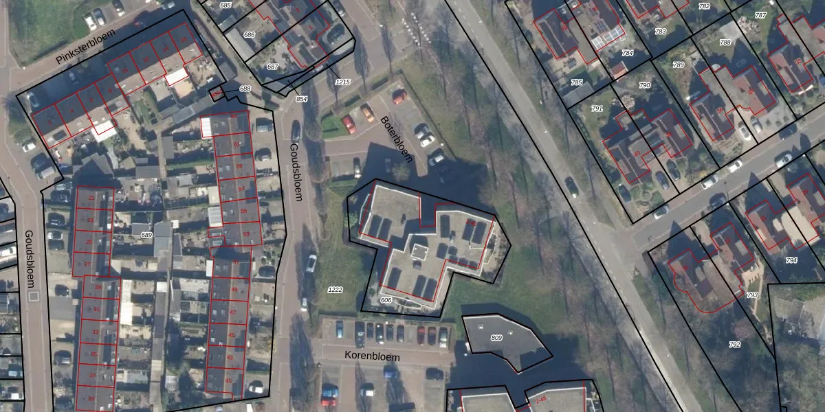 Het perceel waarop Boterbloem 30 staat heeft een oppervlakte van 865 m². Dit is een groot perceel. De perceeloppervlakte wordt geregistreerd door het Kadaster. Gedetailleerde informatie over de maten van dit perceel kunt u vinden in het rapport Kadastrale kaart met maatvoering van Boterbloem 30.