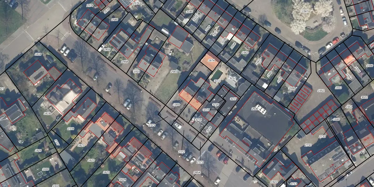 Gebruik de zoekbalk of klik op een perceel voor informatie over de adressen binnen dit perceel.