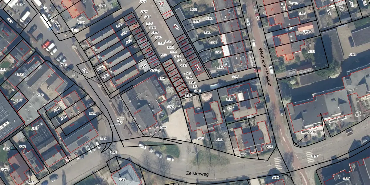Gebruik de zoekbalk of klik op een perceel voor informatie over de adressen binnen dit perceel.