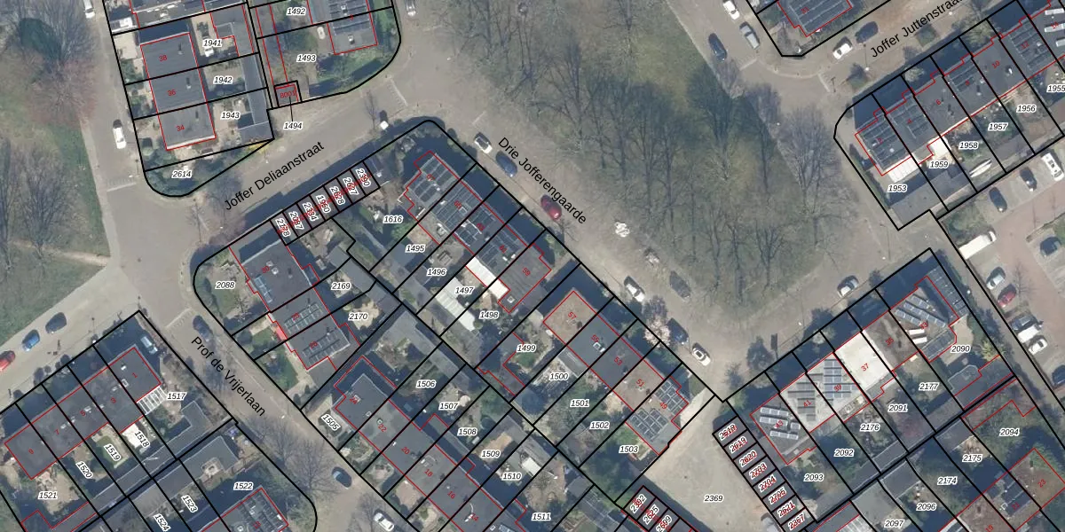 Het perceel waarop Drie Jofferengaarde 59 staat heeft een oppervlakte van 255 m². Dit is een middelgroot perceel. De perceeloppervlakte wordt geregistreerd door het Kadaster. Gedetailleerde informatie over de maten van dit perceel kunt u vinden in het rapport Kadastrale kaart met maatvoering van Drie Jofferengaarde 59.