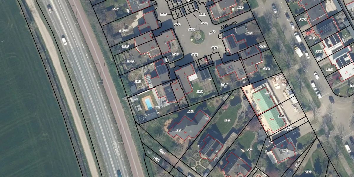 Het perceel waarop Elskamp 6 staat heeft een oppervlakte van 85 m². Dit is een klein perceel. De perceeloppervlakte wordt geregistreerd door het Kadaster. Gedetailleerde informatie over de maten van dit perceel kunt u vinden in het rapport Kadastrale kaart met maatvoering van Elskamp 6.