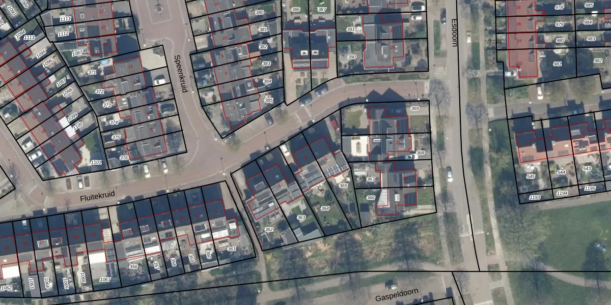 Gebruik de zoekbalk of klik op een perceel voor informatie over de adressen binnen dit perceel.