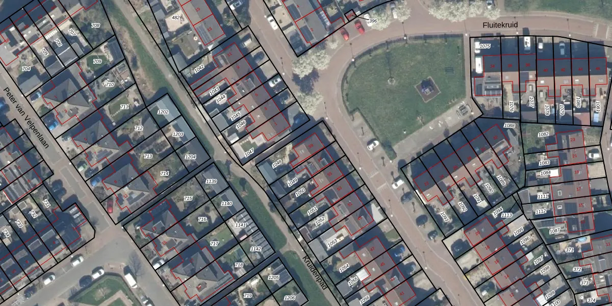 Het perceel waarop Fluitekruid 59 staat heeft een oppervlakte van 208 m². Dit is een middelgroot perceel. De perceeloppervlakte wordt geregistreerd door het Kadaster. Gedetailleerde informatie over de maten van dit perceel kunt u vinden in het rapport Kadastrale kaart met maatvoering van Fluitekruid 59.