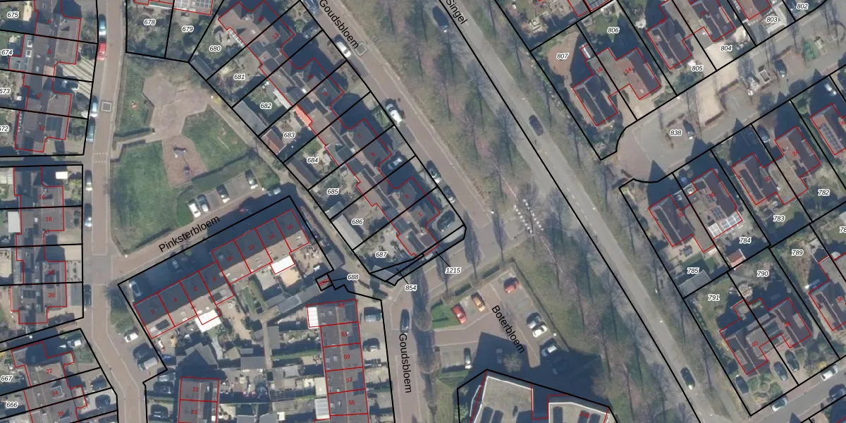 Goudsbloem 1 is gelegen op kadastraal perceel BNK02E687. Deze kadastrale aanduiding is uniek en wordt gebruikt door het Kadaster om eigendomsrechten en andere zakelijke rechten vast te leggen. Het perceel maakt onderdeel uit van de kadastrale gemeente Bunnik.
