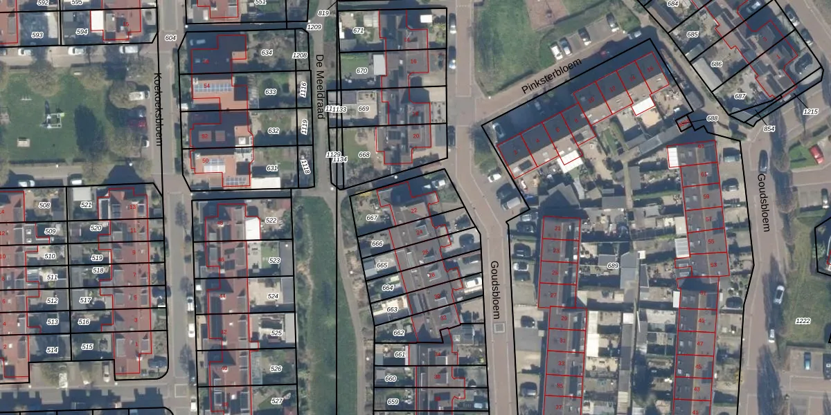 Gebruik de zoekbalk of klik op een perceel voor informatie over de adressen binnen dit perceel.