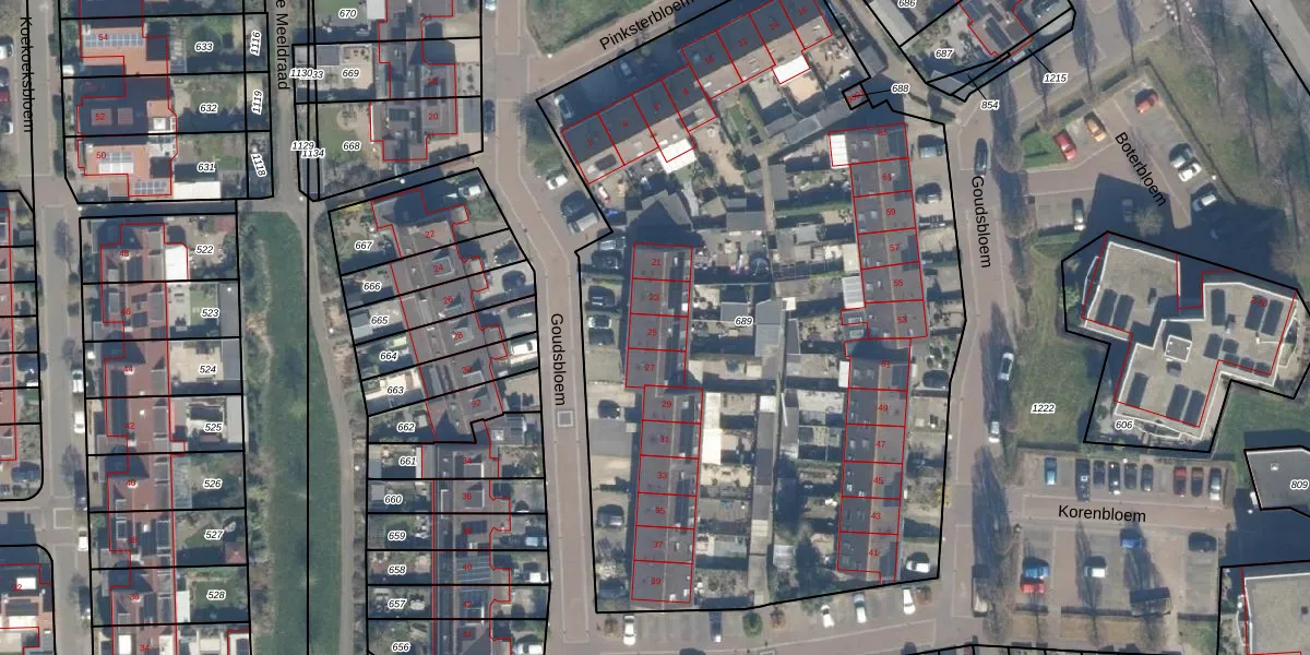 Het perceel waarop Goudsbloem 25 staat heeft een oppervlakte van 4815 m². Dit is een zeer groot perceel. De perceeloppervlakte wordt geregistreerd door het Kadaster. Gedetailleerde informatie over de maten van dit perceel kunt u vinden in het rapport Kadastrale kaart met maatvoering van Goudsbloem 25.