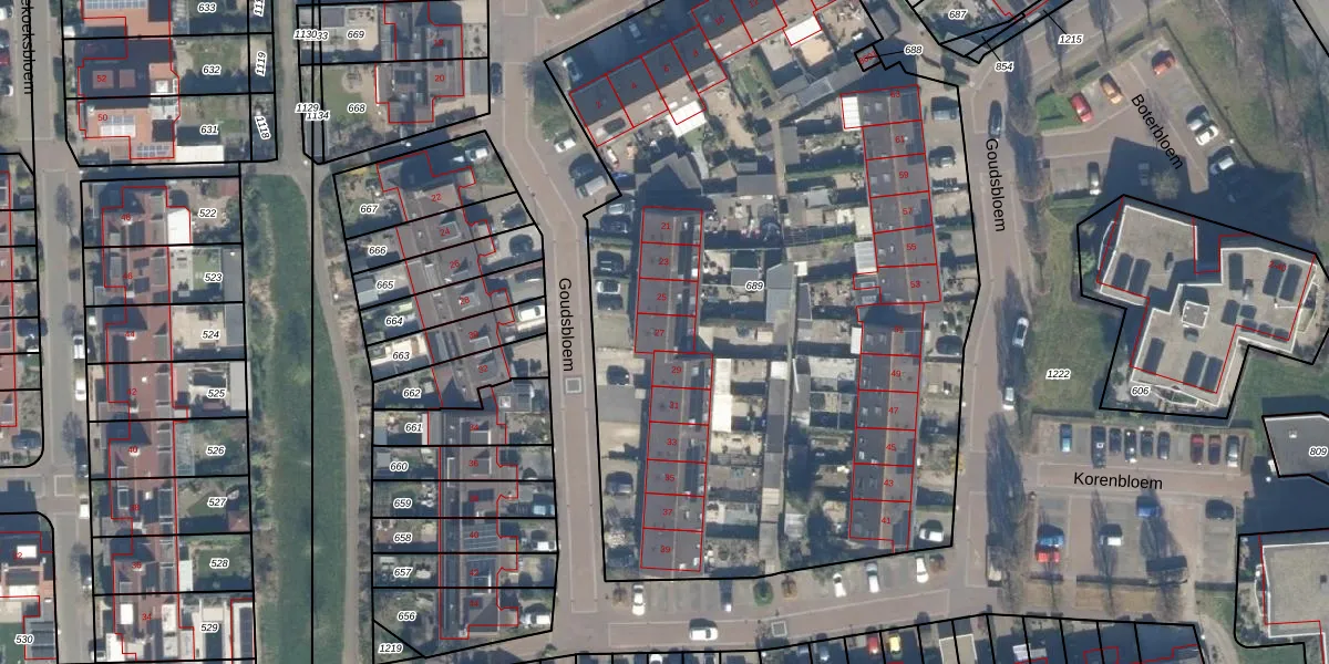 Het perceel waarop Goudsbloem 27 staat heeft een oppervlakte van 4815 m². Dit is een zeer groot perceel. De perceeloppervlakte wordt geregistreerd door het Kadaster. Gedetailleerde informatie over de maten van dit perceel kunt u vinden in het rapport Kadastrale kaart met maatvoering van Goudsbloem 27.