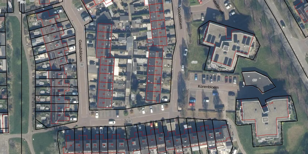 Het perceel waarop Goudsbloem 45 staat heeft een oppervlakte van 4815 m². Dit is een zeer groot perceel. De perceeloppervlakte wordt geregistreerd door het Kadaster. Gedetailleerde informatie over de maten van dit perceel kunt u vinden in het rapport Kadastrale kaart met maatvoering van Goudsbloem 45.