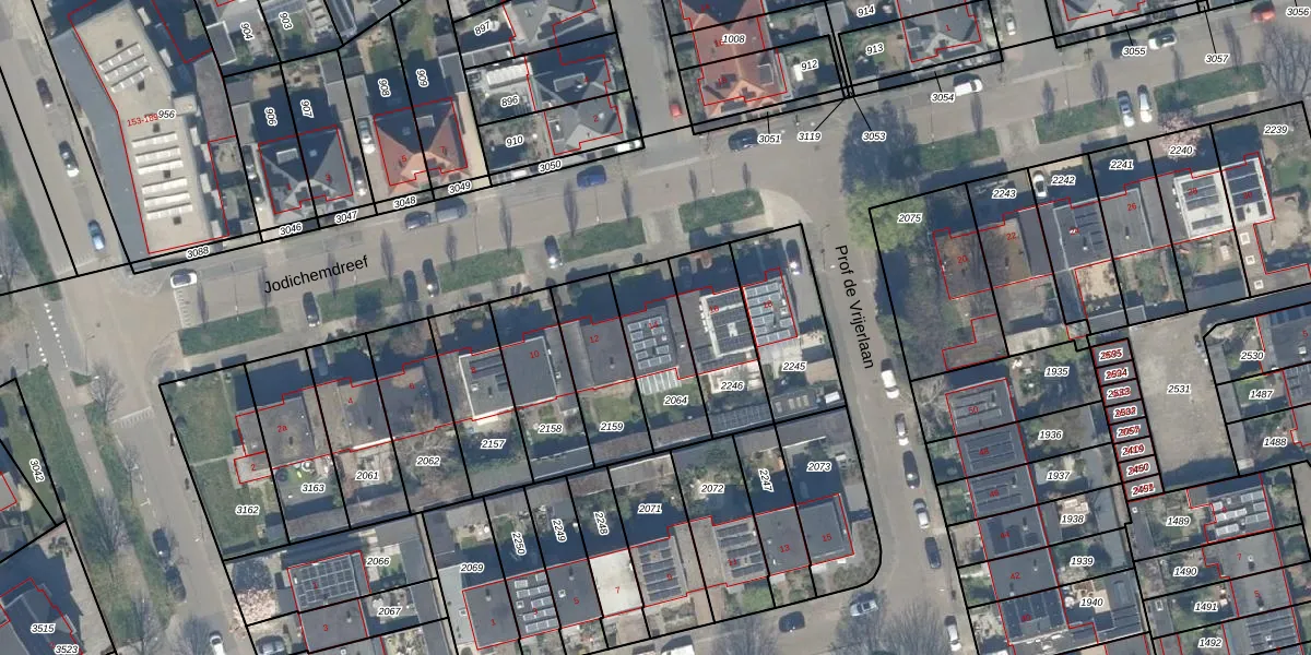Jodichemdreef 14 is gelegen op kadastraal perceel ODK02A2064. Deze kadastrale aanduiding is uniek en wordt gebruikt door het Kadaster om eigendomsrechten en andere zakelijke rechten vast te leggen. Het perceel maakt onderdeel uit van de kadastrale gemeente Odijk.