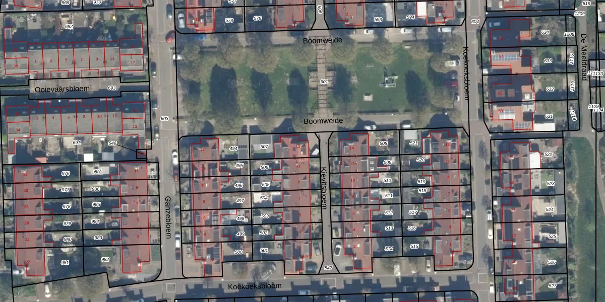 Kievitsbloem 13 is gelegen op kadastraal perceel BNK02E507. Deze kadastrale aanduiding is uniek en wordt gebruikt door het Kadaster om eigendomsrechten en andere zakelijke rechten vast te leggen. Het perceel maakt onderdeel uit van de kadastrale gemeente Bunnik.