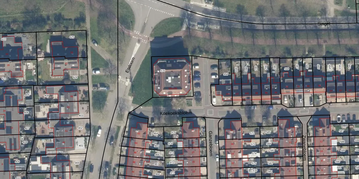 Het perceel waarop Koekoeksbloem 126 staat heeft een oppervlakte van 510 m². Dit is een groot perceel. De perceeloppervlakte wordt geregistreerd door het Kadaster. Gedetailleerde informatie over de maten van dit perceel kunt u vinden in het rapport Kadastrale kaart met maatvoering van Koekoeksbloem 126.