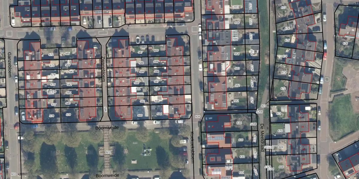 Het perceel waarop Koekoeksbloem 19 staat heeft een oppervlakte van 126 m². Dit is een middelgroot perceel. De perceeloppervlakte wordt geregistreerd door het Kadaster. Gedetailleerde informatie over de maten van dit perceel kunt u vinden in het rapport Kadastrale kaart met maatvoering van Koekoeksbloem 19.