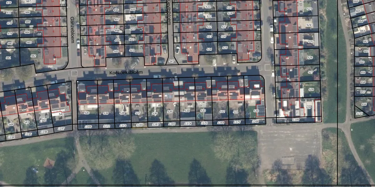 Gebruik de zoekbalk of klik op een perceel voor informatie over de adressen binnen dit perceel.