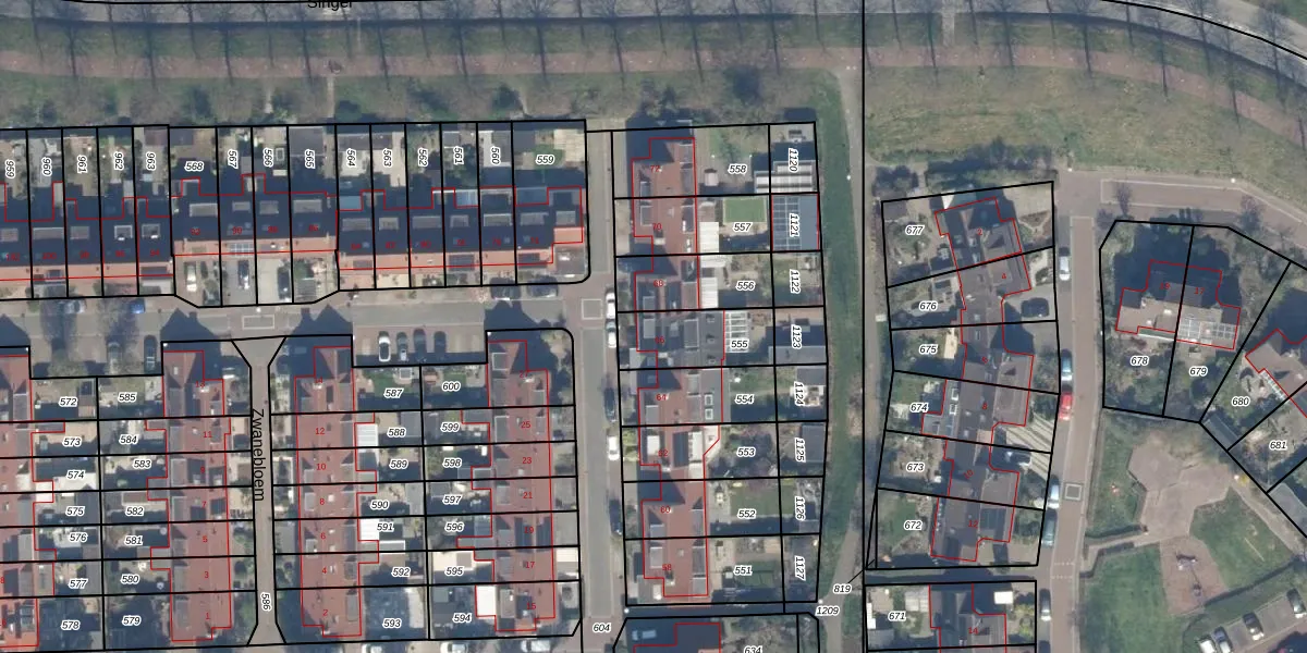 Gebruik de zoekbalk of klik op een perceel voor informatie over de adressen binnen dit perceel.