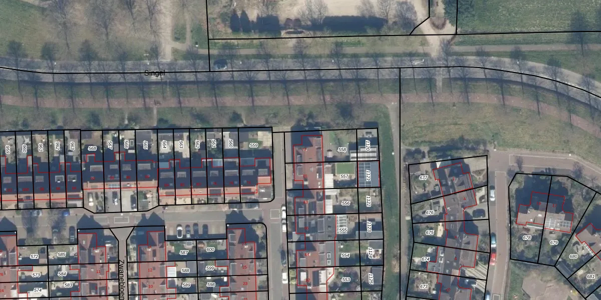 Gebruik de zoekbalk of klik op een perceel voor informatie over de adressen binnen dit perceel.