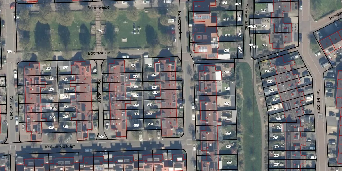 Het perceel waarop Koekoeksbloem 9 staat heeft een oppervlakte van 126 m². Dit is een middelgroot perceel. De perceeloppervlakte wordt geregistreerd door het Kadaster. Gedetailleerde informatie over de maten van dit perceel kunt u vinden in het rapport Kadastrale kaart met maatvoering van Koekoeksbloem 9.
