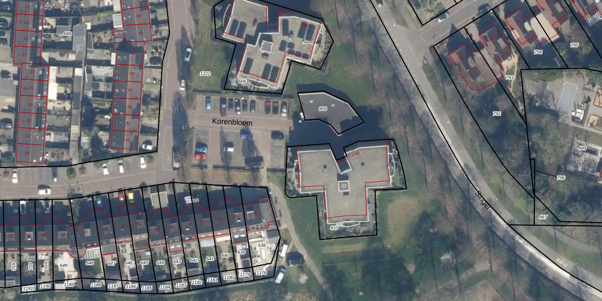 Het perceel waarop Korenbloem 2 staat heeft een oppervlakte van 900 m². Dit is een groot perceel. De perceeloppervlakte wordt geregistreerd door het Kadaster. Gedetailleerde informatie over de maten van dit perceel kunt u vinden in het rapport Kadastrale kaart met maatvoering van Korenbloem 2.