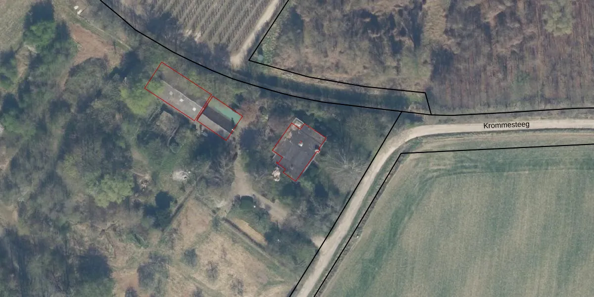 Het perceel waarop Krommesteeg 2 staat heeft een oppervlakte van 1,9 ha. Dit is een zeer groot perceel. De perceeloppervlakte wordt geregistreerd door het Kadaster. Gedetailleerde informatie over de maten van dit perceel kunt u vinden in het rapport Kadastrale kaart met maatvoering van Krommesteeg 2.