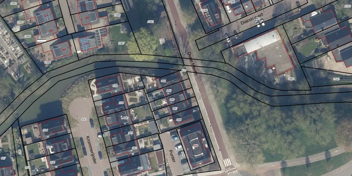 Oude Haven 7 is gelegen op kadastraal perceel WHV00B945. Deze kadastrale aanduiding is uniek en wordt gebruikt door het Kadaster om eigendomsrechten en andere zakelijke rechten vast te leggen. Het perceel maakt onderdeel uit van de kadastrale gemeente Werkhoven.