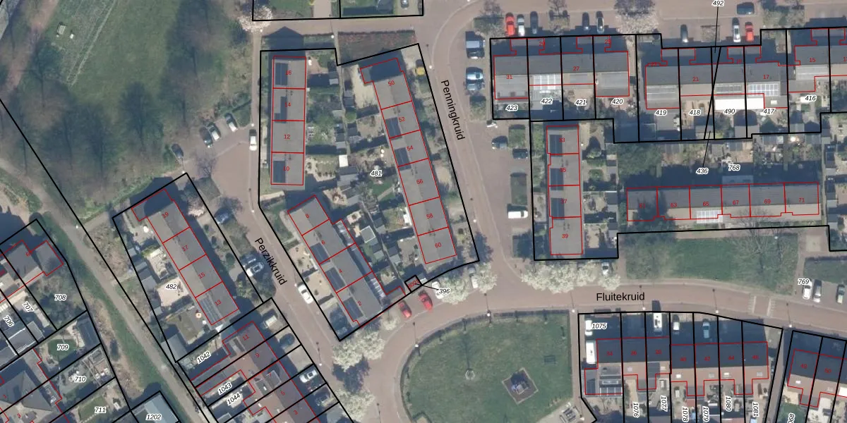 Het perceel waarop Penningkruid 58 staat heeft een oppervlakte van 2535 m². Dit is een zeer groot perceel. De perceeloppervlakte wordt geregistreerd door het Kadaster. Gedetailleerde informatie over de maten van dit perceel kunt u vinden in het rapport Kadastrale kaart met maatvoering van Penningkruid 58.