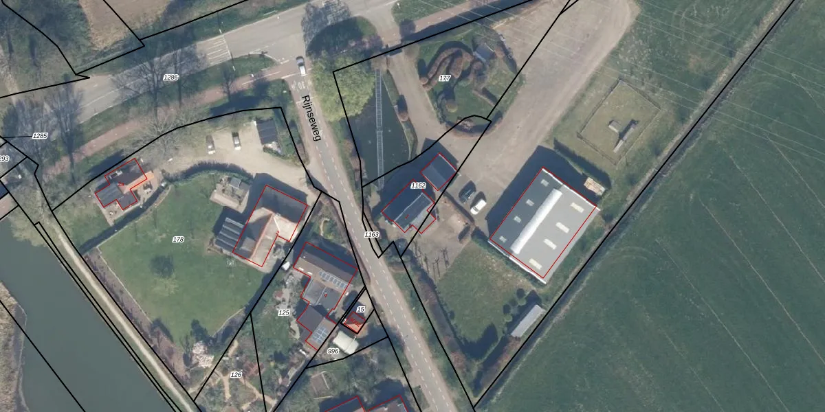 Rijnseweg 1 is gelegen op kadastraal perceel BNK02E1162. Deze kadastrale aanduiding is uniek en wordt gebruikt door het Kadaster om eigendomsrechten en andere zakelijke rechten vast te leggen. Het perceel maakt onderdeel uit van de kadastrale gemeente Bunnik.