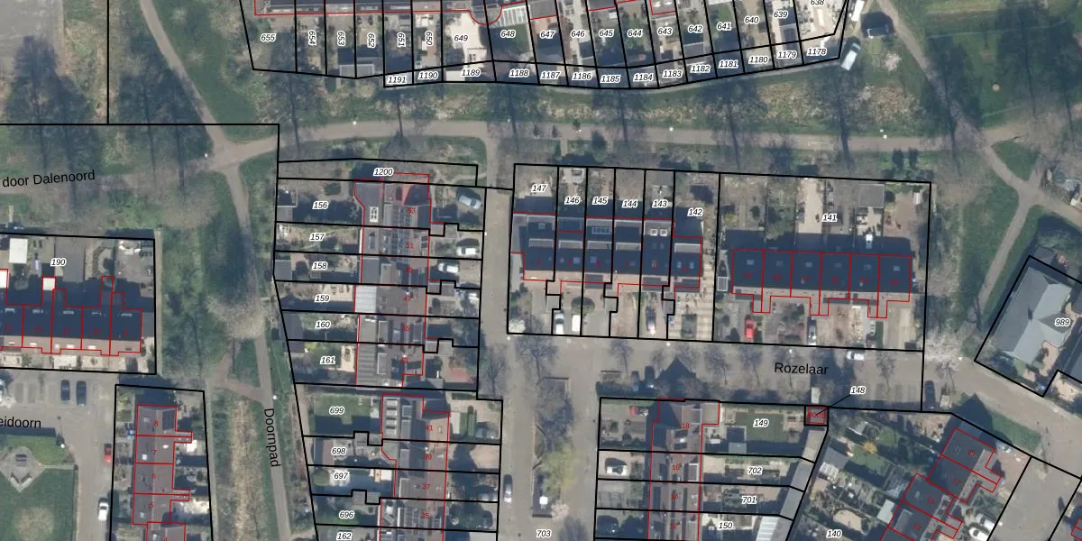 Het perceel waarop Rozelaar 1 staat heeft een oppervlakte van 257 m². Dit is een middelgroot perceel. De perceeloppervlakte wordt geregistreerd door het Kadaster. Gedetailleerde informatie over de maten van dit perceel kunt u vinden in het rapport Kadastrale kaart met maatvoering van Rozelaar 1.