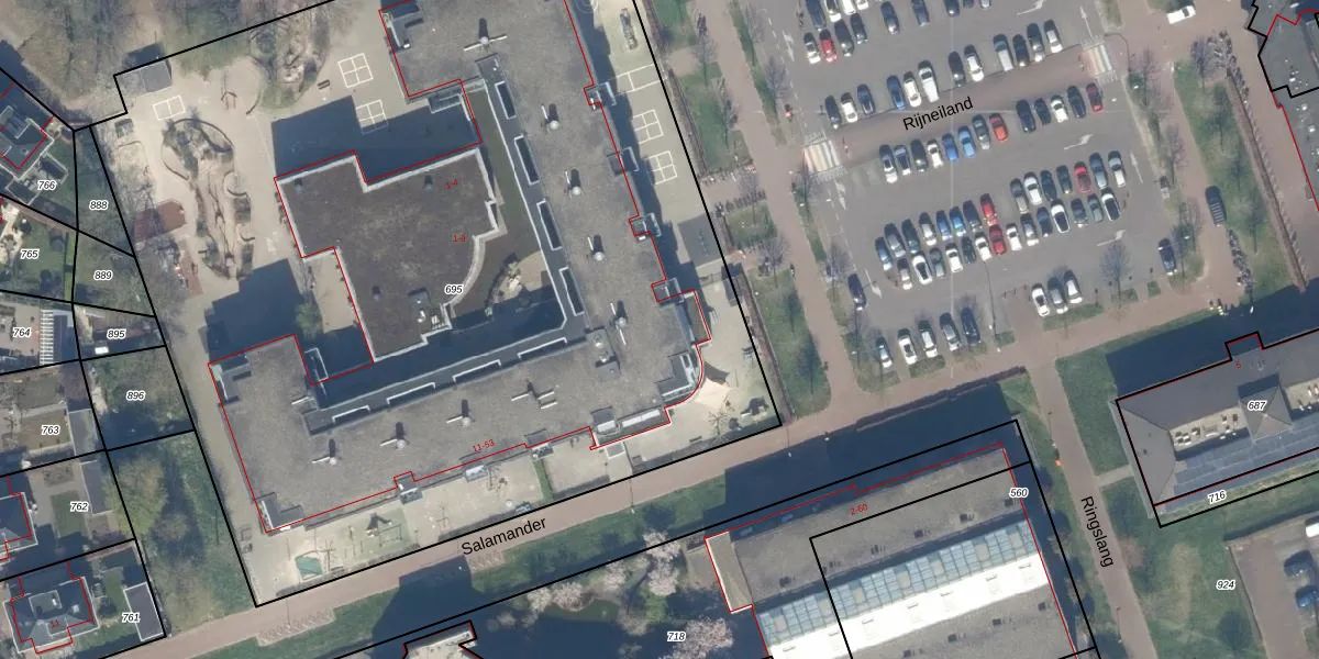 Het perceel waarop Salamander 1 staat heeft een oppervlakte van 6970 m². Dit is een zeer groot perceel. De perceeloppervlakte wordt geregistreerd door het Kadaster. Gedetailleerde informatie over de maten van dit perceel kunt u vinden in het rapport Kadastrale kaart met maatvoering van Salamander 1.