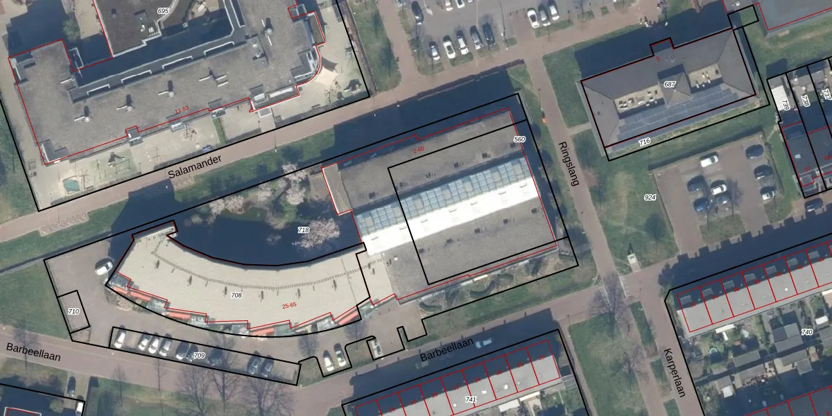 Het perceel waarop Salamander 18 staat heeft een oppervlakte van 1056 m². Dit is een zeer groot perceel. De perceeloppervlakte wordt geregistreerd door het Kadaster. Gedetailleerde informatie over de maten van dit perceel kunt u vinden in het rapport Kadastrale kaart met maatvoering van Salamander 18.