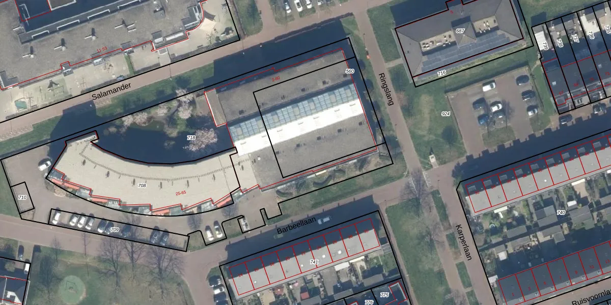 Het perceel waarop Salamander 36 staat heeft een oppervlakte van 1056 m². Dit is een zeer groot perceel. De perceeloppervlakte wordt geregistreerd door het Kadaster. Gedetailleerde informatie over de maten van dit perceel kunt u vinden in het rapport Kadastrale kaart met maatvoering van Salamander 36.