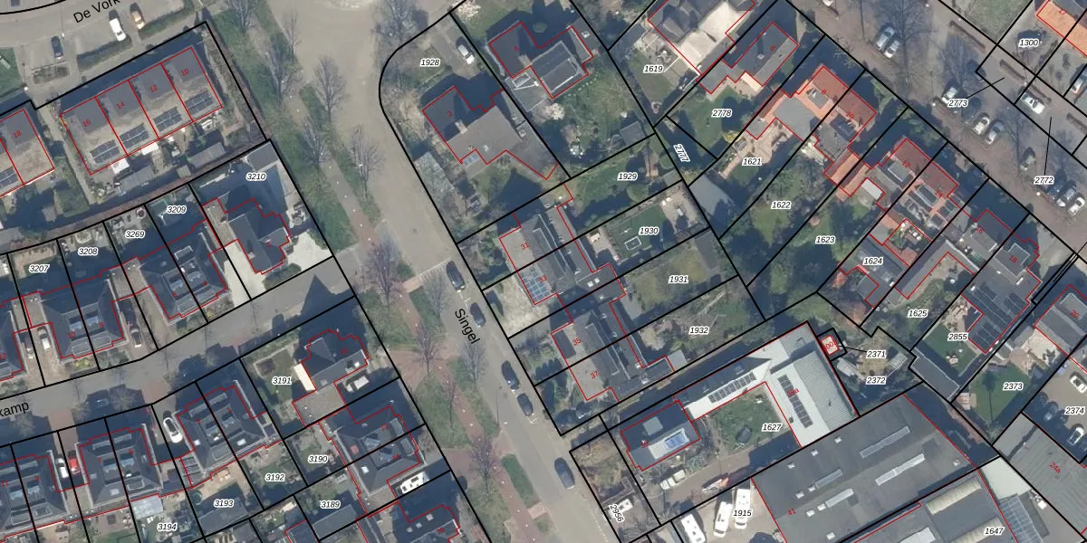 Het perceel waarop Singel 33 staat heeft een oppervlakte van 426 m². Dit is een groot perceel. De perceeloppervlakte wordt geregistreerd door het Kadaster. Gedetailleerde informatie over de maten van dit perceel kunt u vinden in het rapport Kadastrale kaart met maatvoering van Singel 33.