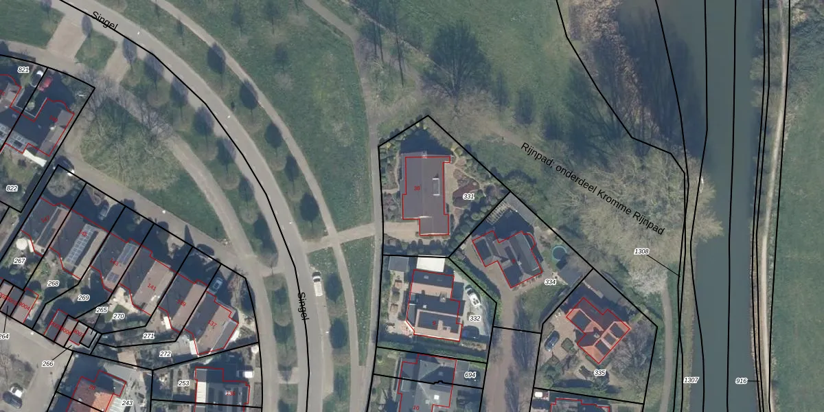 Singel 38 is gelegen op kadastraal perceel BNK02E331. Deze kadastrale aanduiding is uniek en wordt gebruikt door het Kadaster om eigendomsrechten en andere zakelijke rechten vast te leggen. Het perceel maakt onderdeel uit van de kadastrale gemeente Bunnik.