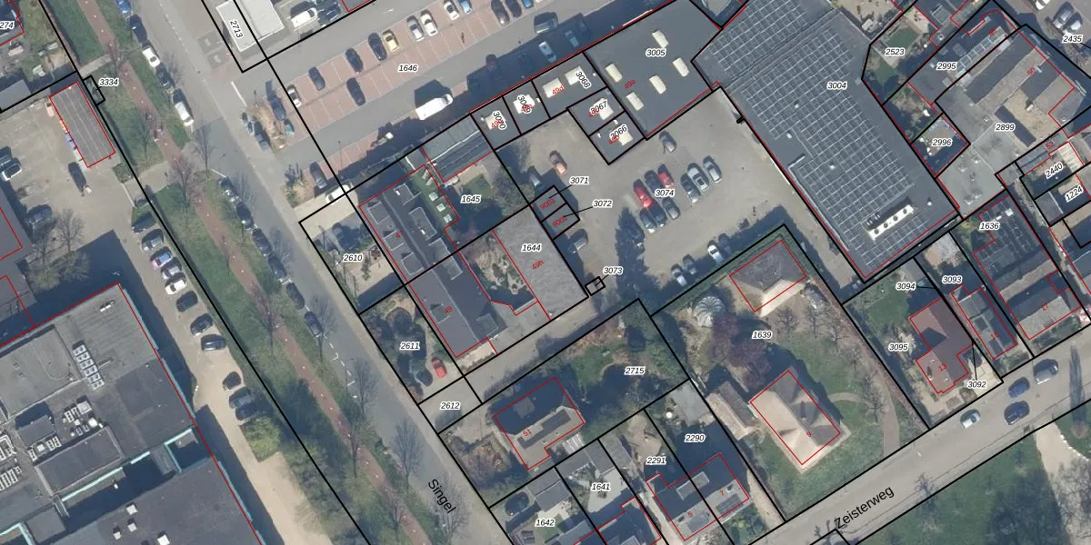 Het perceel waarop Singel 49-h staat heeft een oppervlakte van 540 m². Dit is een groot perceel. De perceeloppervlakte wordt geregistreerd door het Kadaster. Gedetailleerde informatie over de maten van dit perceel kunt u vinden in het rapport Kadastrale kaart met maatvoering van Singel 49-h.