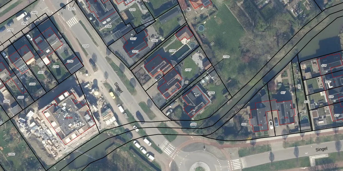 Het perceel waarop Singel 55 staat heeft een oppervlakte van 550 m². Dit is een groot perceel. De perceeloppervlakte wordt geregistreerd door het Kadaster. Gedetailleerde informatie over de maten van dit perceel kunt u vinden in het rapport Kadastrale kaart met maatvoering van Singel 55.