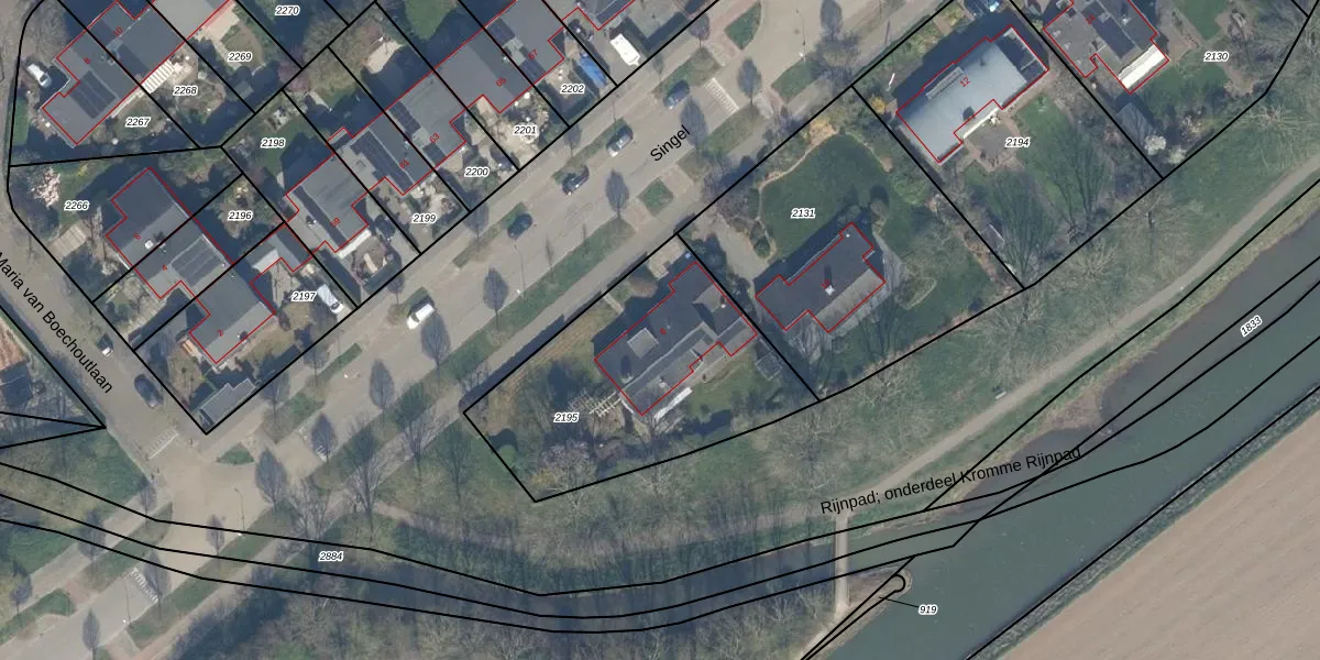 Het perceel waarop Singel 8 staat heeft een oppervlakte van 1082 m². Dit is een zeer groot perceel. De perceeloppervlakte wordt geregistreerd door het Kadaster. Gedetailleerde informatie over de maten van dit perceel kunt u vinden in het rapport Kadastrale kaart met maatvoering van Singel 8.