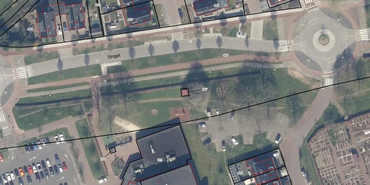 Het perceel waarop Singel 8001 staat heeft een oppervlakte van 16 m². Dit is een klein perceel. De perceeloppervlakte wordt geregistreerd door het Kadaster. Gedetailleerde informatie over de maten van dit perceel kunt u vinden in het rapport Kadastrale kaart met maatvoering van Singel 8001.