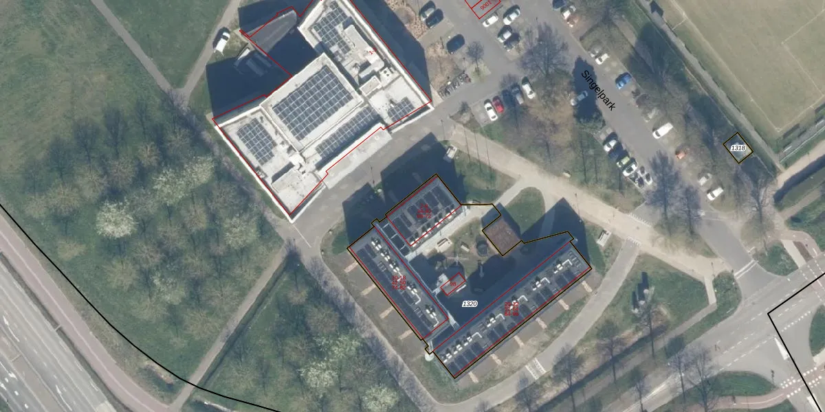 Het perceel waarop Singelpark 70 staat heeft een oppervlakte van 1414 m². Dit is een zeer groot perceel. De perceeloppervlakte wordt geregistreerd door het Kadaster. Gedetailleerde informatie over de maten van dit perceel kunt u vinden in het rapport Kadastrale kaart met maatvoering van Singelpark 70.