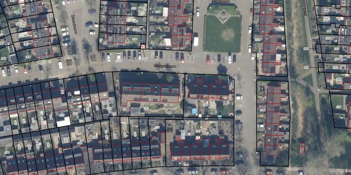 Het perceel waarop Wegedoorn 9 staat heeft een oppervlakte van 995 m². Dit is een groot perceel. De perceeloppervlakte wordt geregistreerd door het Kadaster. Gedetailleerde informatie over de maten van dit perceel kunt u vinden in het rapport Kadastrale kaart met maatvoering van Wegedoorn 9.