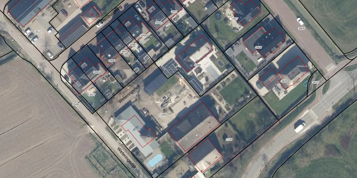 Weteringshof 4 is gelegen op kadastraal perceel ODK02A3399. Deze kadastrale aanduiding is uniek en wordt gebruikt door het Kadaster om eigendomsrechten en andere zakelijke rechten vast te leggen. Het perceel maakt onderdeel uit van de kadastrale gemeente Odijk.