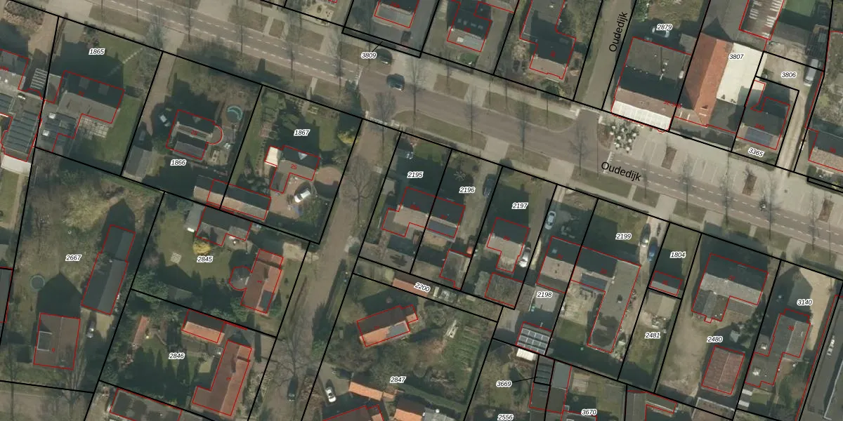Het perceel waarop Oudedijk 25-A staat heeft een oppervlakte van 402 m². Dit is een groot perceel. De perceeloppervlakte wordt geregistreerd door het Kadaster. Gedetailleerde informatie over de maten van dit perceel kunt u vinden in het rapport Kadastrale kaart met maatvoering van Oudedijk 25-A.