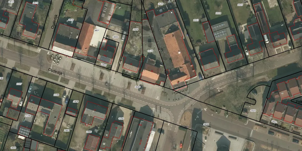 Oudedijk 38 is gelegen op kadastraal perceel UDN00D3119. Deze kadastrale aanduiding is uniek en wordt gebruikt door het Kadaster om eigendomsrechten en andere zakelijke rechten vast te leggen. Het perceel maakt onderdeel uit van de kadastrale gemeente Uden.