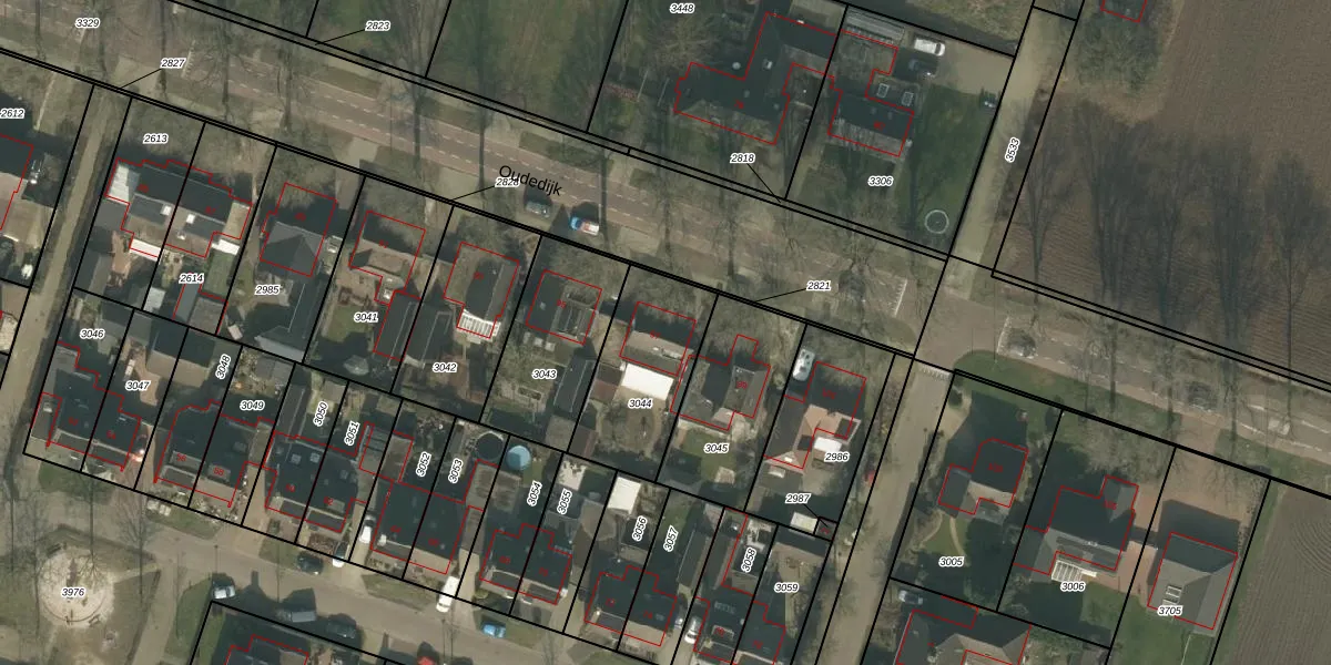 Oudedijk 97 is gelegen op kadastraal perceel UDN00D3044. Deze kadastrale aanduiding is uniek en wordt gebruikt door het Kadaster om eigendomsrechten en andere zakelijke rechten vast te leggen. Het perceel maakt onderdeel uit van de kadastrale gemeente Uden.
