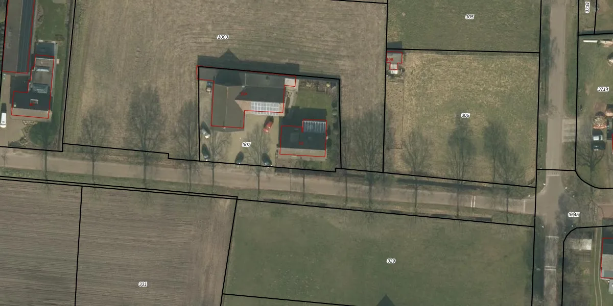 Het adres is gelegen op perceel 307 in de sectie O en de kadastrale gemeente Uden. De kadastrale aanduiding is aldus UDN00-O-307. Het perceel is kleiner dan gemiddeld in Uden. Het perceel is 1410 m² groot, terwijl het gemiddelde ligt op 3242,2 m². De grootste perceeloppervlakte in de kadastrale gemeente is 1,06 km². De kleinste oppervlakte bedraagt 0 m². Op het perceel zijn 2 adressen aanwezig. De huidige grenzen van het perceel zijn digitaal in de Basisregistratie Kadaster (BRK) geregistreerd op 25-05-2009.