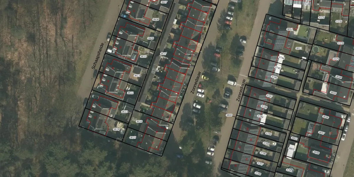 Het perceel waarop Zonnedauw 21 staat heeft een oppervlakte van 1715 m². Dit is een zeer groot perceel. De perceeloppervlakte wordt geregistreerd door het Kadaster. Gedetailleerde informatie over de maten van dit perceel kunt u vinden in het rapport Kadastrale kaart met maatvoering van Zonnedauw 21.