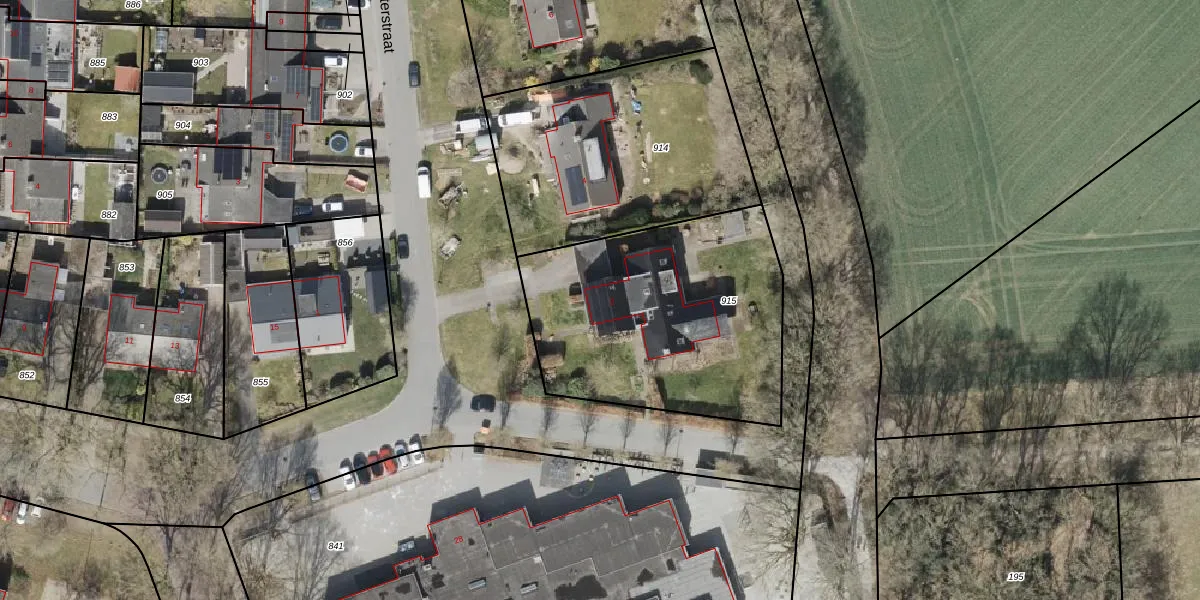 Het adres ligt op het perceel ODN00-K-915, dat zich in de kadastrale gemeente Odoorn bevindt. Het perceel is kleiner dan gemiddeld in Odoorn. Het perceel is 1250 m² groot, terwijl het gemiddelde ligt op 1,4 ha. Het kleinste perceel in de kadastrale gemeente is 1 m² groot. De grootste perceeloppervlakte is 69,9 ha. Op het perceel bevinden zich geen andere adressen. In de Basisregistratie Kadaster (BRK) werden de grenzen van het perceel geregistreerd op 28-11-1997.